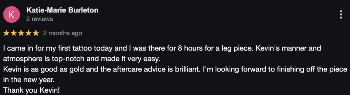 • The consultation is tailored to your previous experience, and we are here to answer all your questions. We do our best to ensure that you are well-prepared for your tattoo session.